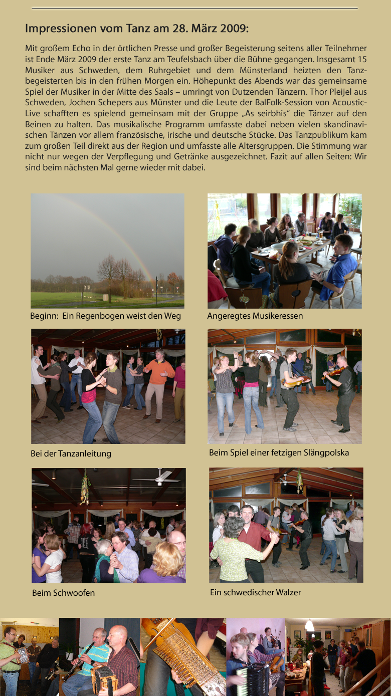 wollten wir in Kooperation mit der VHS Lüdinghausen eine Tanz- und Musikreise nach Schweden veranstalten. Die Busreise mit einem großen Bus für Teilnehmer und Instrumente wäre durch die beteiligten Musiker ein besonderes kulturelles Erlebnis gewesen. Ein Traum in den sonnigen Nächten des Nordens der Musik zu lauschen, zu tanzen oder selber aktiv zu sein. Leider gab es zu wenig feste Zusagen innerhalb der Anmeldefrist.