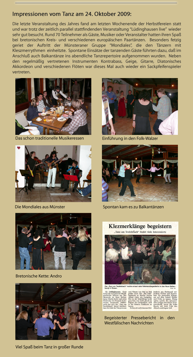 Zwei bis drei Mal im Jahr wollen wir Tanzveranstaltungen mit traditioneller Musik auf akustischen Instrumenten durchführen. Die Termine und die musikalischen Schwerpunkte der Veranstaltungen findet Ihr hier. Unsere nächste Tanzveranstaltung findet statt am